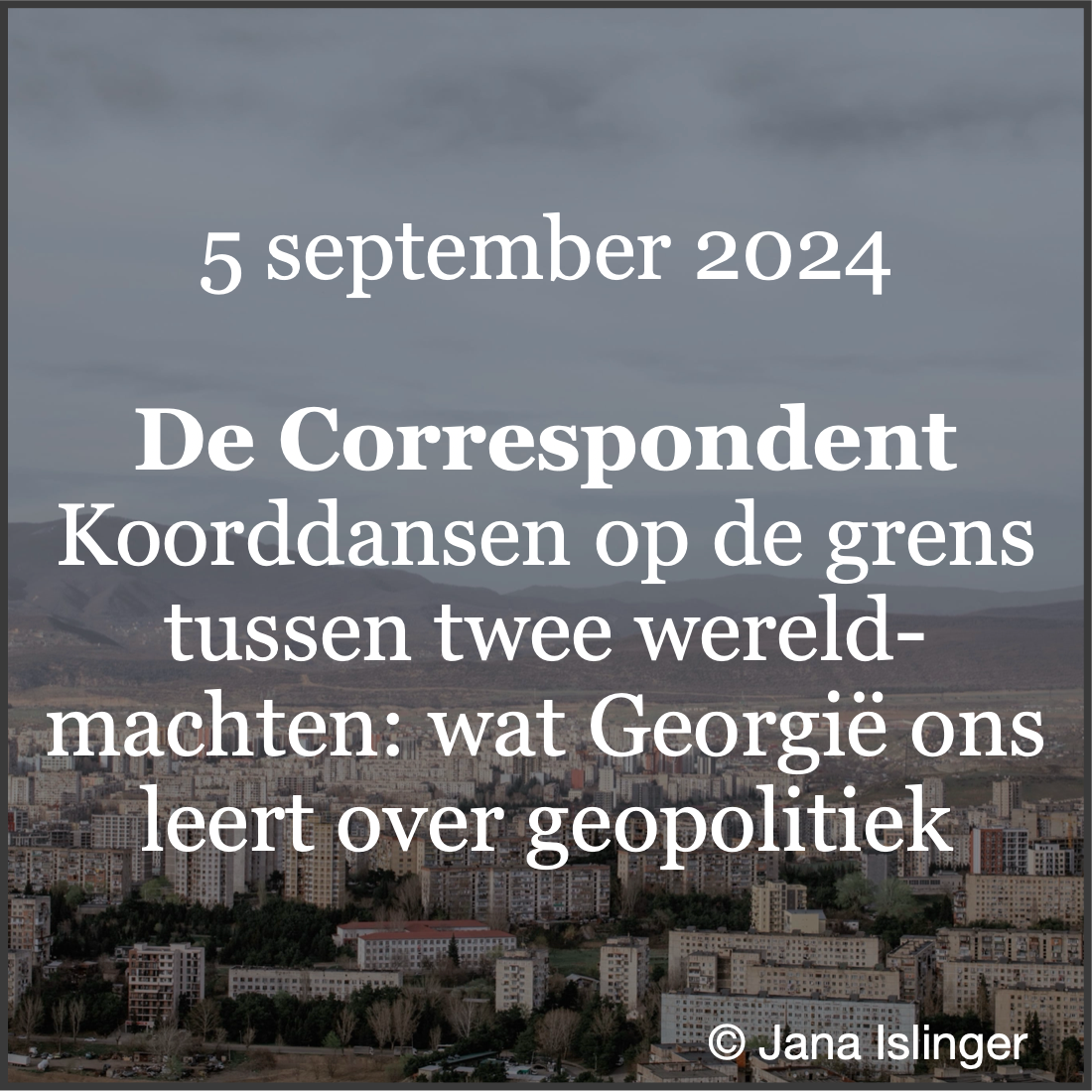 Ik ben freelance journalist in Tbilisi, Georgië. Ik schrijf o.a. voor De Correspondent, De Groene Amsterdammer, Trouw en Wordt Vervolgd over onderwerpen die te maken hebben met de Kaukasus en wereldpolitiek.